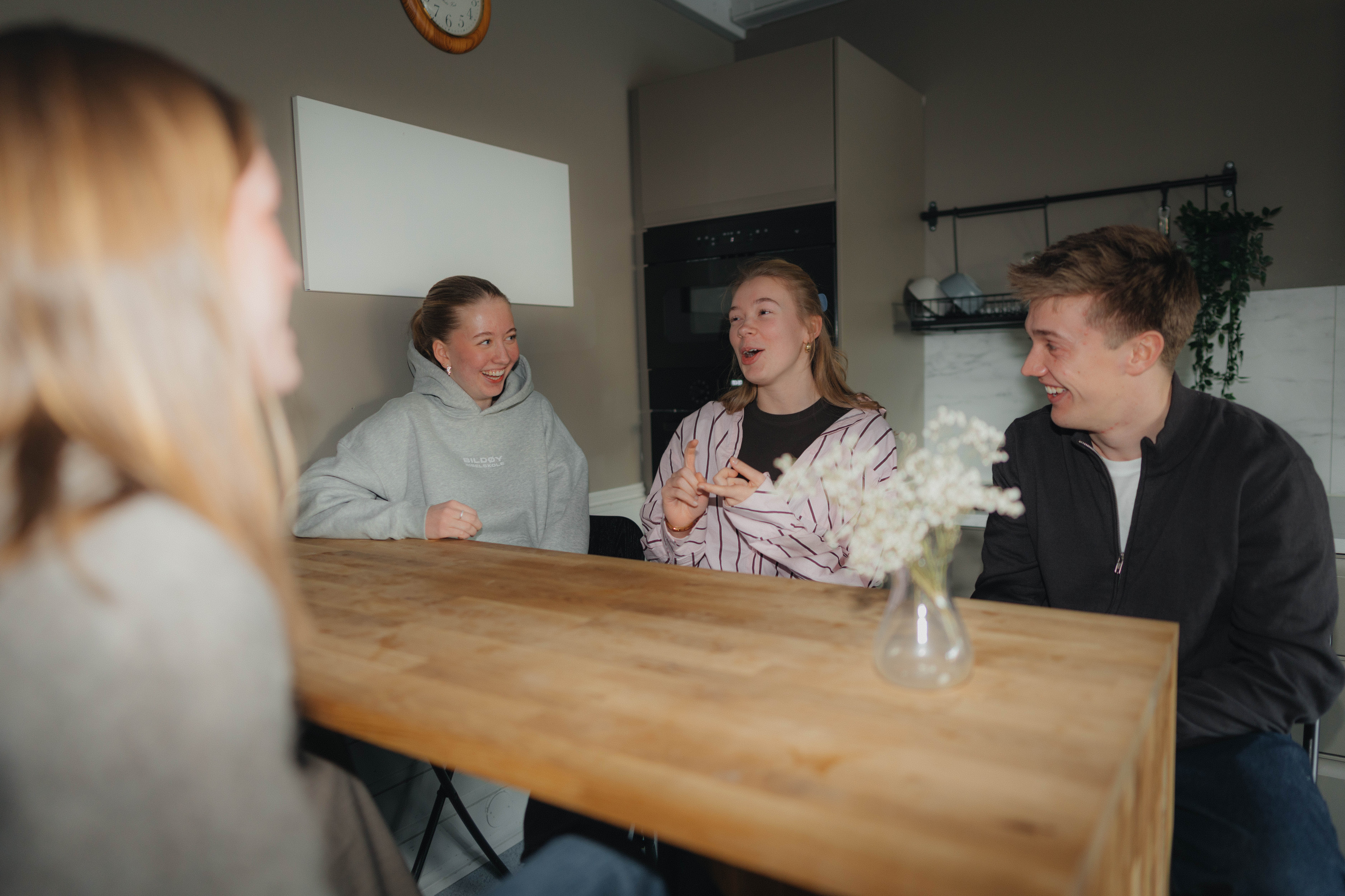 Det er altså tre internater, og hvert internat har eget kjøkken og stue. Det blir dermed en utmerket samlingsplass på kveldstid. Kjøkkenet er komplett med komfyr og det som trengs av servise.